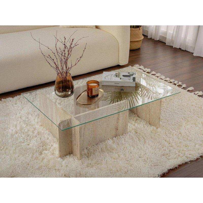 Siyah Cam Şeffaf Orta Sehpa 120×60 cm Beyaz Raflı – 102615