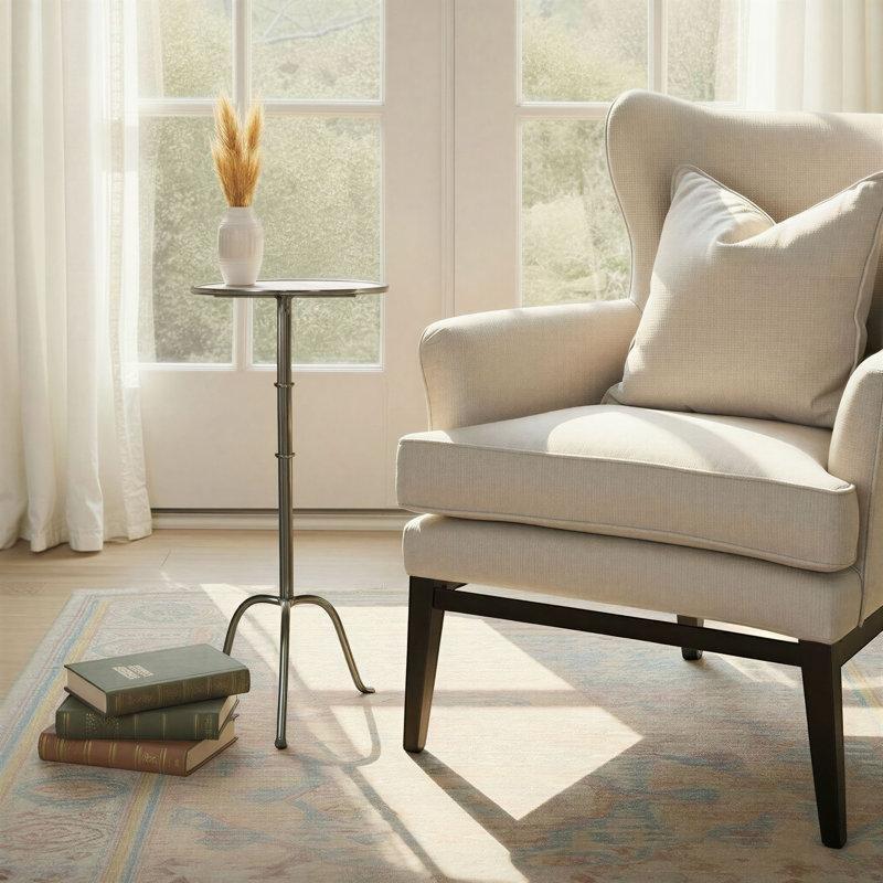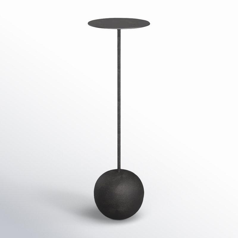 • Yuvarlak demir tabla ve kaideli ayak yapısıyla tasarlanmış ince formda yan sehpa; dar alanlarda konumlandırmaya uygundur.