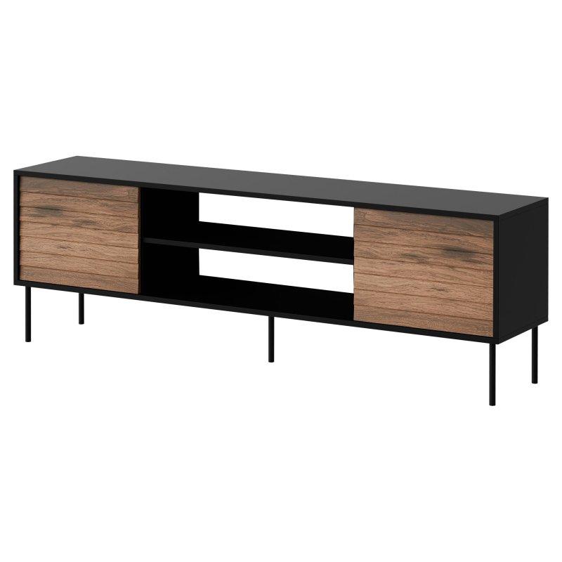 Siyah laminat gövdesi ve ceviz tonunda MDF kapılarıyla tasarlanmış bu tv ünitesi, modern yaşam alanlarına uyum sağlayan bir seçimdir. Ürün 180 cm genişliğinde, 60 cm yüksekliğinde ve 40 cm derinliğinde olup geniş ekran televizyonlar için yeterli alan sunmaktadır.