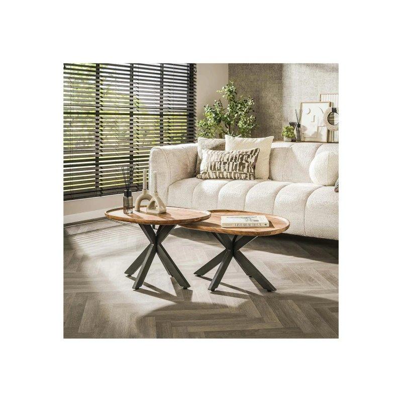 Bu ürün masif mango ağacından üretilmiş siyah renkli zigon sehpadır. 71×71 cm yüzey ölçülerine ve 49 cm yüksekliğe sahiptir. İki ayrı sehpadan oluşan tasarım hem birlikte hem de ayrı kullanılabilir. Kare formlu tablalar modern ve işlevsel bir kullanım sağlar.