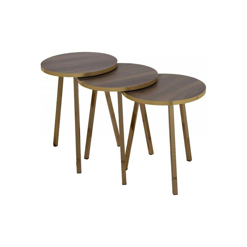 Demir konstrüksiyon yapısıyla oldukça dayanıklıdır. Her bir sehpa 50 kg taşıma kapasitesine sahiptir. Yuvarlak tablalar ve ince metal çerçeveler modern bir görünüm oluşturur. Gold renkteki metal ayaklar siyah tablalarla uyumlu bir kontrast yaratır.