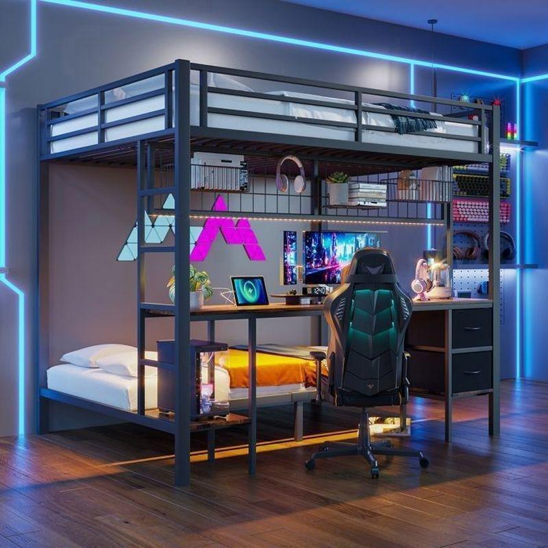 • Modern endüstriyel tasarımı fonksiyonellikle birleştiren bu ranza, alt kısmında yer alan geniş çalışma masası ve entegre raf sistemi ile dar alanlarda dahi ferah bir yaşam ve çalışma alanı oluşturur.