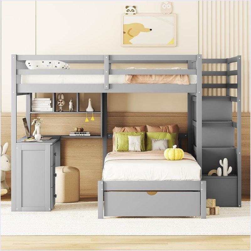 • Dar alanlarda maksimum verimlilik sağlayan L tipi tasarım, iki ayrı uyku alanı ile entegre çalışma masasını ve kitaplık modülünü tek bir kompakt ünitede birleştirir.