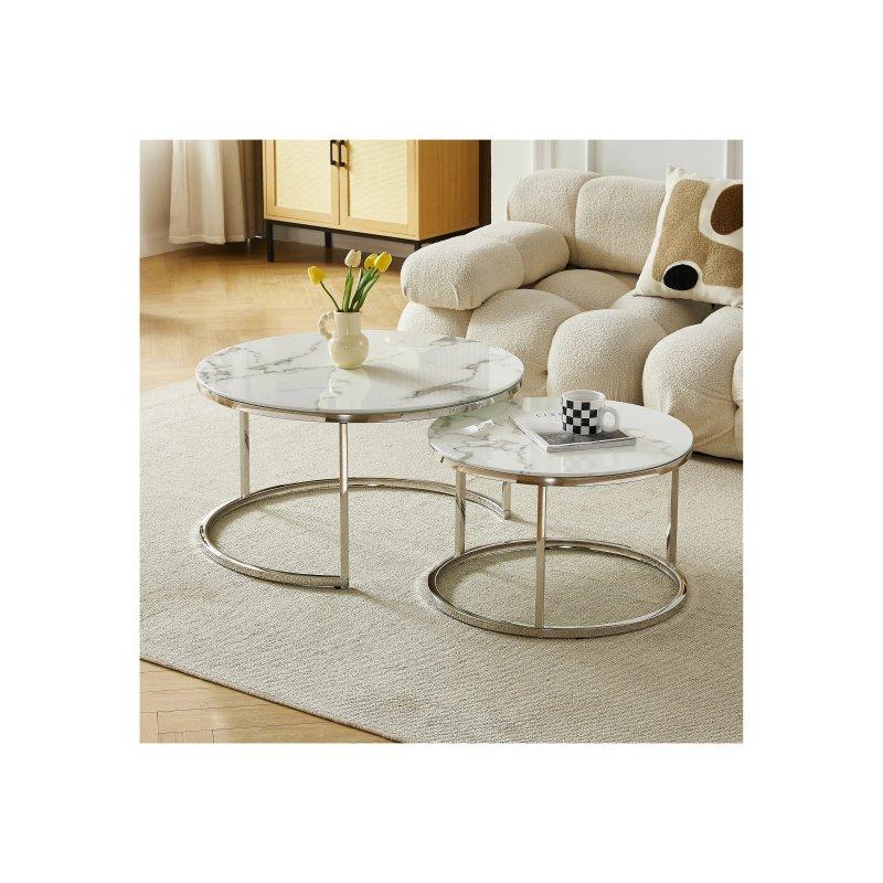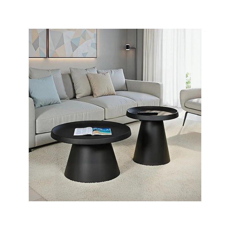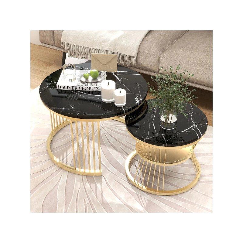 Siyah Metal Çerçeveli Şeffaf Cam Orta Sehpa 119×56 cm (2 Li Set) – 102730