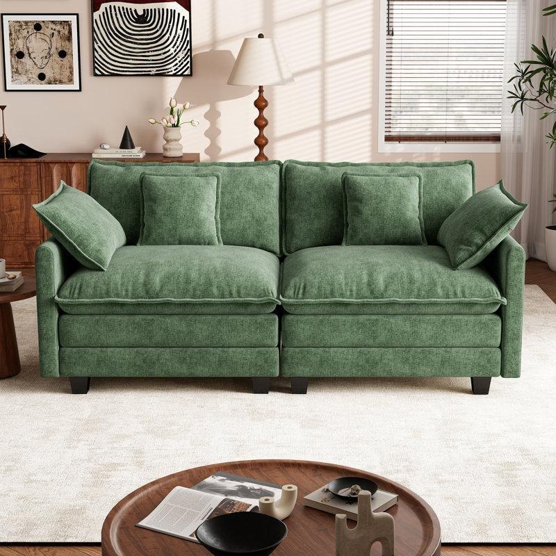 Şönil Kumaş Kare Kolçaklı Masif Ahşap İskeletli İkili Koltuk – 136 cm – 208455