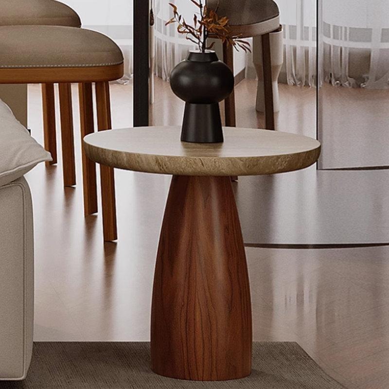 Bu yuvarlak orta sehpa, Wabi-Sabi tasarım felsefesinden ilham alarak minimalist ve doğal bir atmosfer yaratır. Ürün, doğal traverten üstü ve masif ahşap ayakları ile birleştirilerek sade ama etkileyici bir tasarıma sahiptir. Düşük satürasyon tonları sayesinde mekana sakin ve rahatlayıcı bir hava katır.