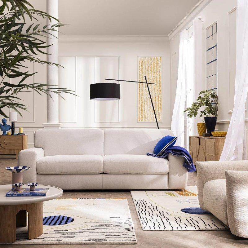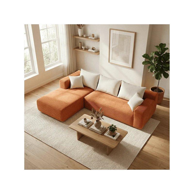 • Döşemesinde kullanılan turuncu fitilli kadife kumaş, dokusuyla sıcak bir his yaratırken, %90 polyester ve %10 naylon içeriği sayesinde tüylenme ve takılmalara karşı dayanıklılık gösterir.