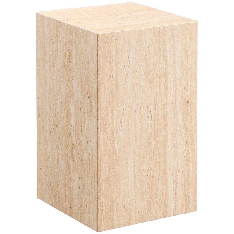 • Turuncu renkte, düzensiz formlu traverten yan sehpa; heykelsi hatlarıyla salon, antre veya teras gibi alanlarda kullanım için tasarlanmıştır.