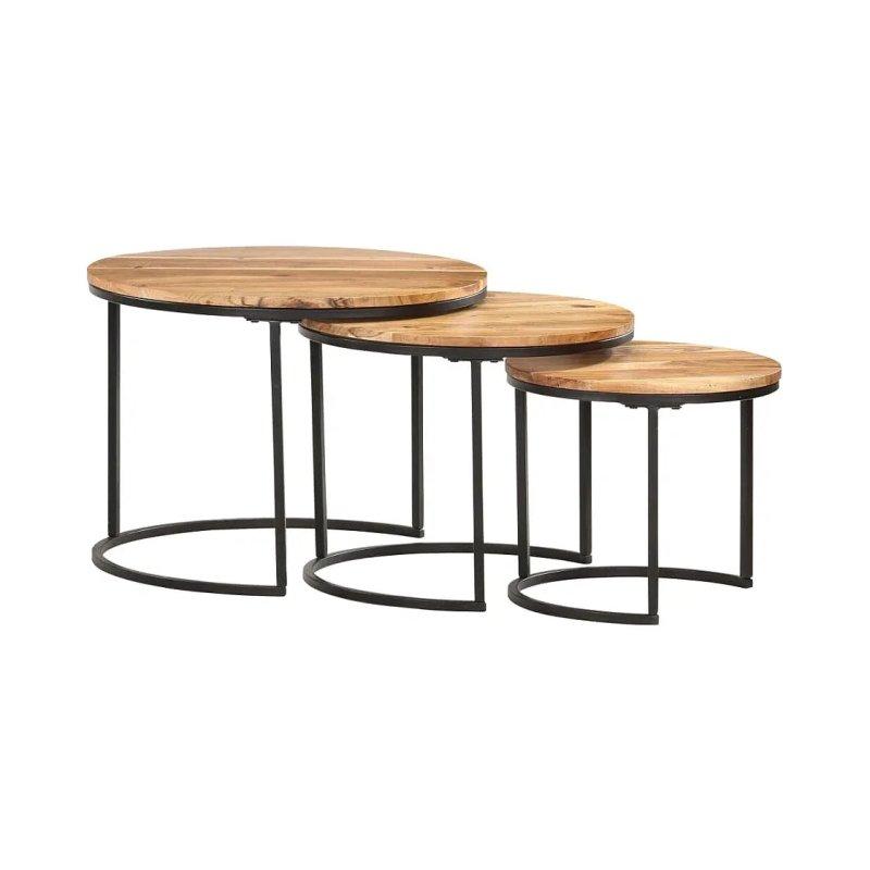 Bu üçlü zigon sehpa takımı masif mango ahşap ve siyah metal gövdeden üretilmiştir. Farklı boyutlarda 3 sehpadan oluşan set küçük mekanlar ve sınırlı alanlara sahip evler için uygundur.