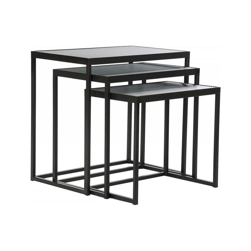 Bu üçlü zigon sehpa seti, siyah metal çerçeve ve antrasit rengi tabla yüzeyi ile modern bir tasarıma sahiptir. Endüstriyel tarzda tasarlanmış olan set, hem salon hem de ofis kullanımı için uygundur.