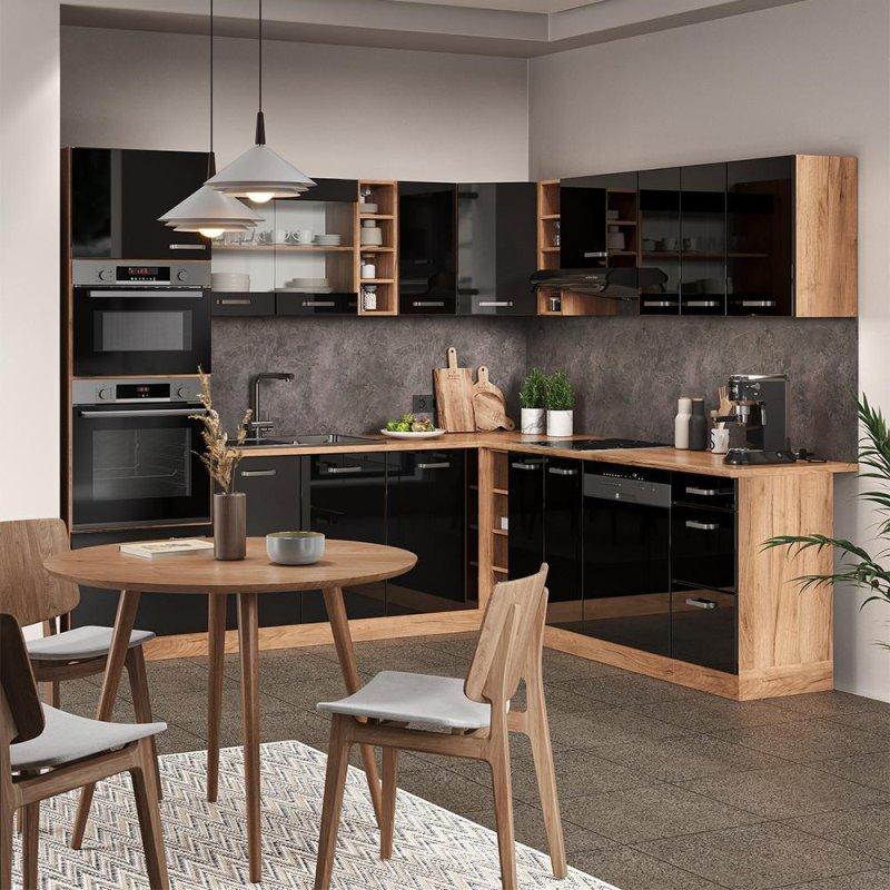 • Wotan meşe ve grafit renklerinin modern uyumuyla tasarlanan bu köşe mutfak takımı, mekanınıza çağdaş bir atmosfer katar.