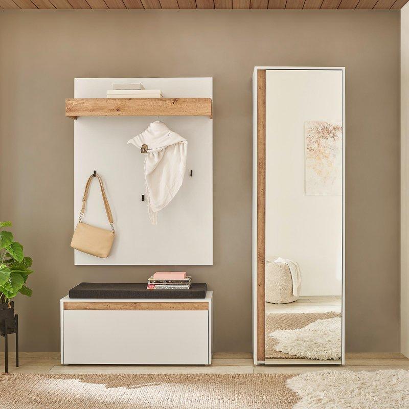 • Wotan meşe rengi ve gri tonlarının modern birleşimiyle tasarlanan bu portmanto, antrenize şık bir karşılama atmosferi kazandırır.