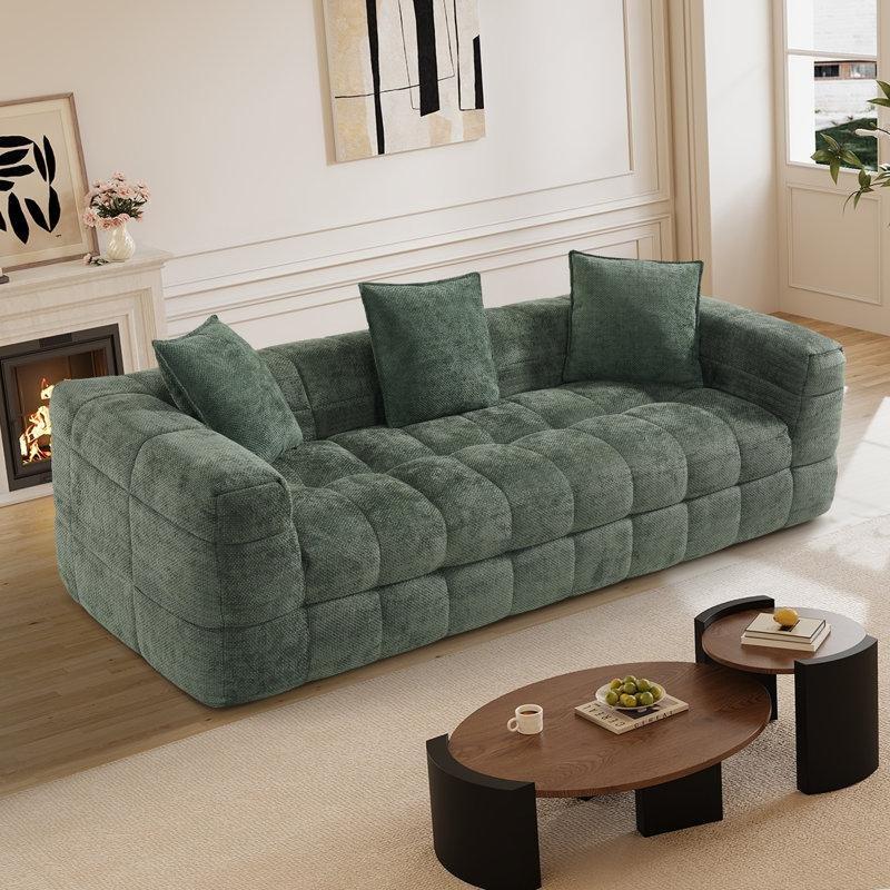 • Bisküvi sırt tasarımı ve helezon yaylı oturum minderi, günün yorgunluğunu atmak için dolgun ve destekleyici bir deneyim sunar.