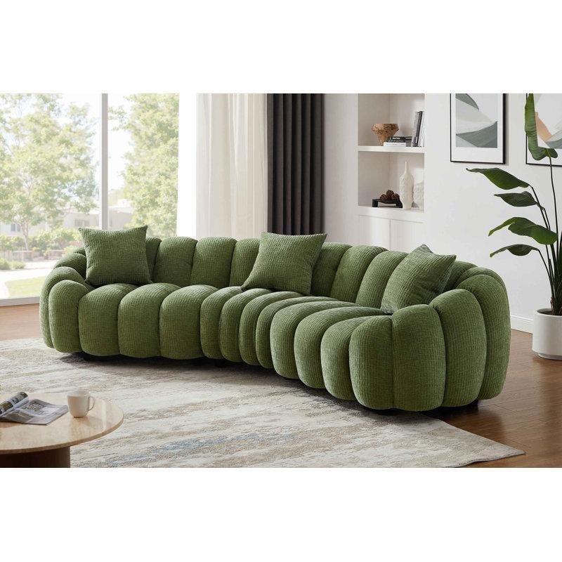 • Yeşil renkli şönil kumaş döşemesi yumuşak bir dokuya sahipken, siyah renkli ayakları tasarıma modern bir kontrast katar.