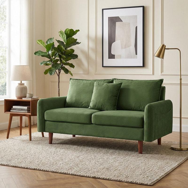 • Yeşil renkli suni kürk kumaş ile kaplanan bu ikili koltuk, gold renkli metal ayakları sayesinde modern ve minimalist mekanlara uyum sağlar.