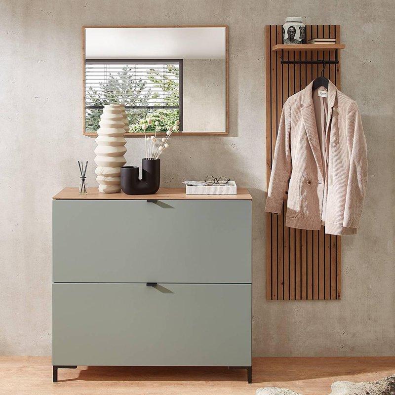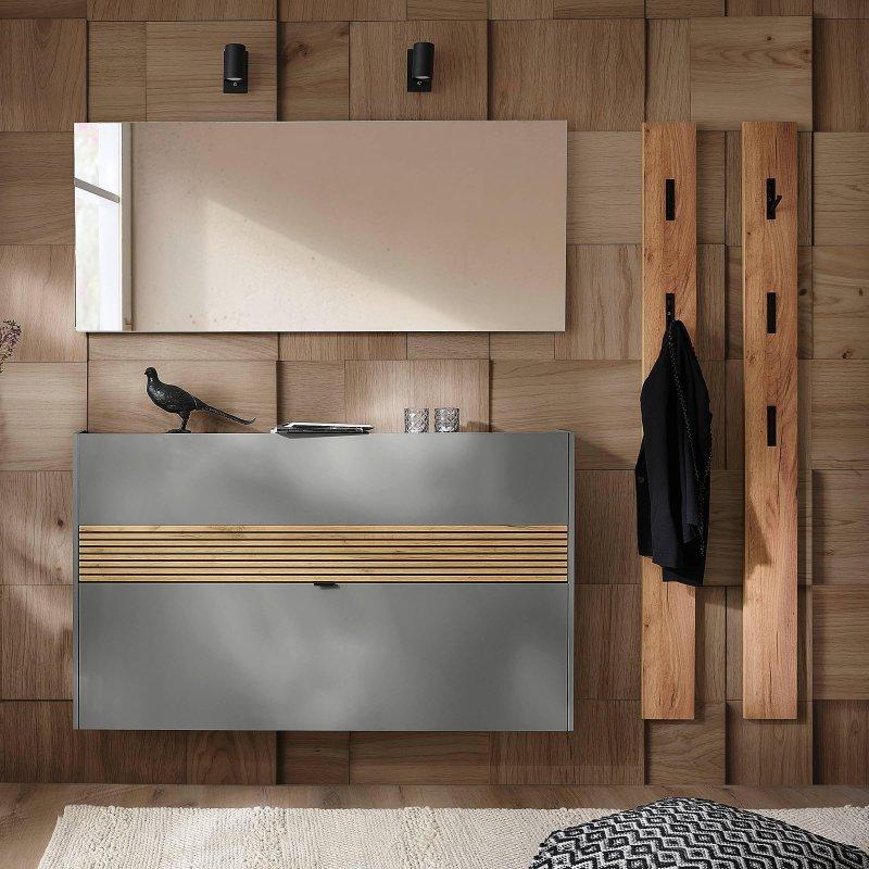 • Geniş depolama çözümleri sunan bu modelde, kapak arkasında giysileriniz için bir raf, uzun bir ayna ile kısmen gizlenmiş dört adet askı, bir ayakkabı dolabı ve ayakkabılarınızı yerleştirebileceğiniz açık bir niş bulunur.