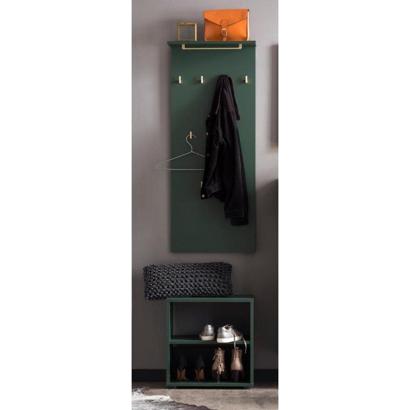 • Tasarım, Yeşil Taş rengi gövdeyi tamamlayan siyah metal kulplar ve askılar ile modern bir bütünlük kazanır.