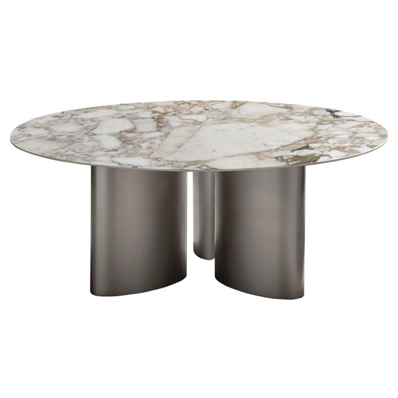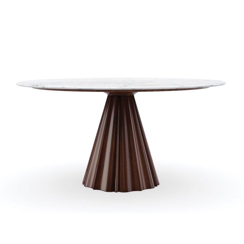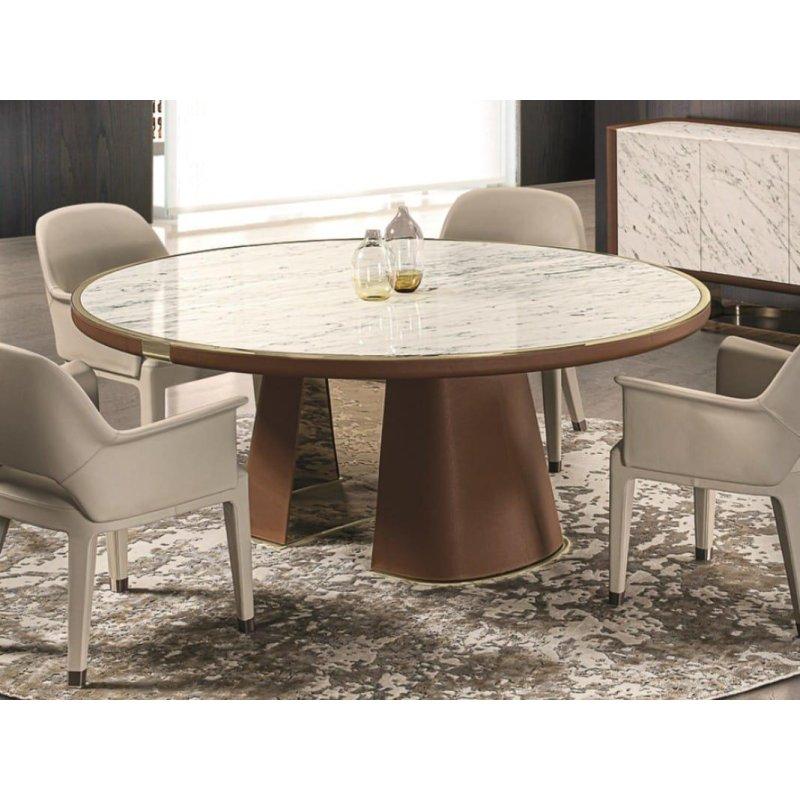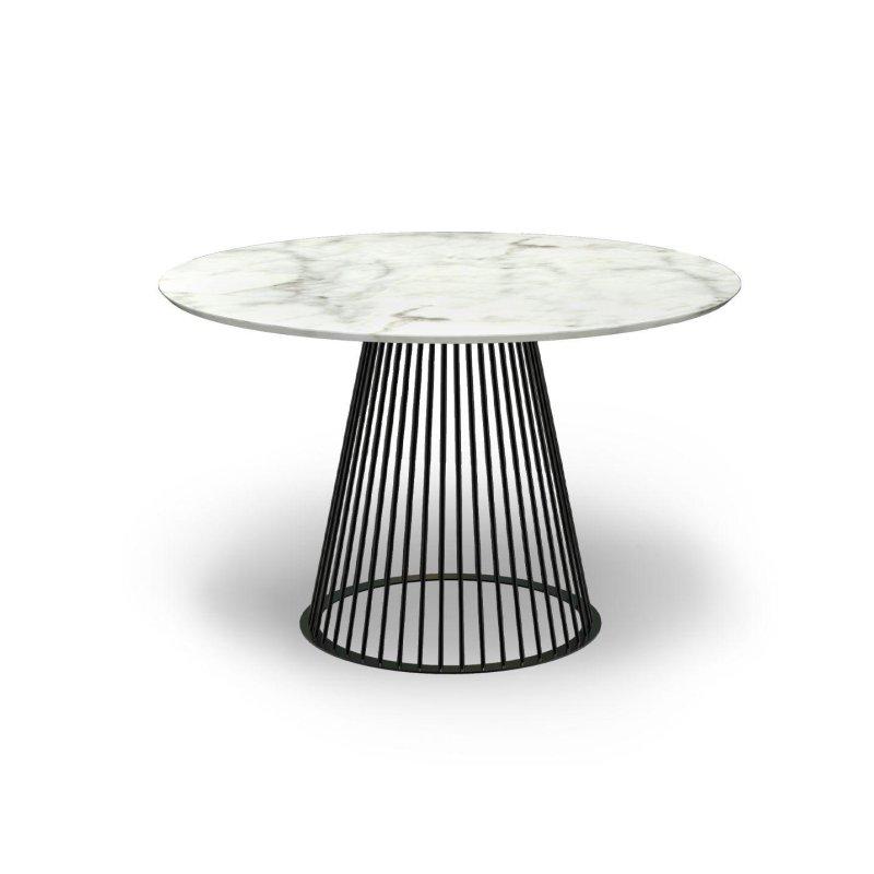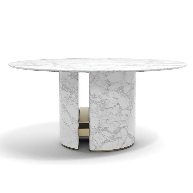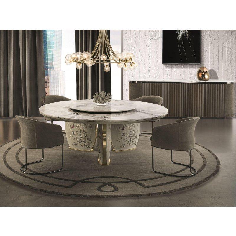 Bu yuvarlak mermer masa 200 cm çapında ve 78 cm yüksekliğinde zarif bir tasarıma sahiptir. Masa, Dover White mermer tablası ve parlak siyah nikel kaplı metal ayakları ile dikkat çeker. Ortasında 120 cm çapında metal dokulu döner tabla bulunur.