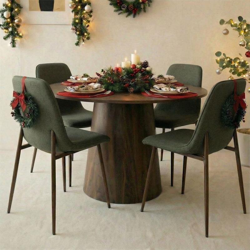 Bu ürün, modern yaşam alanları için tasarlanmış şık bir yemek odası çözümüdür. Takım, bir adet yuvarlak cam masa ve dört adet kadife kaplı sandalyeden oluşmaktadır.