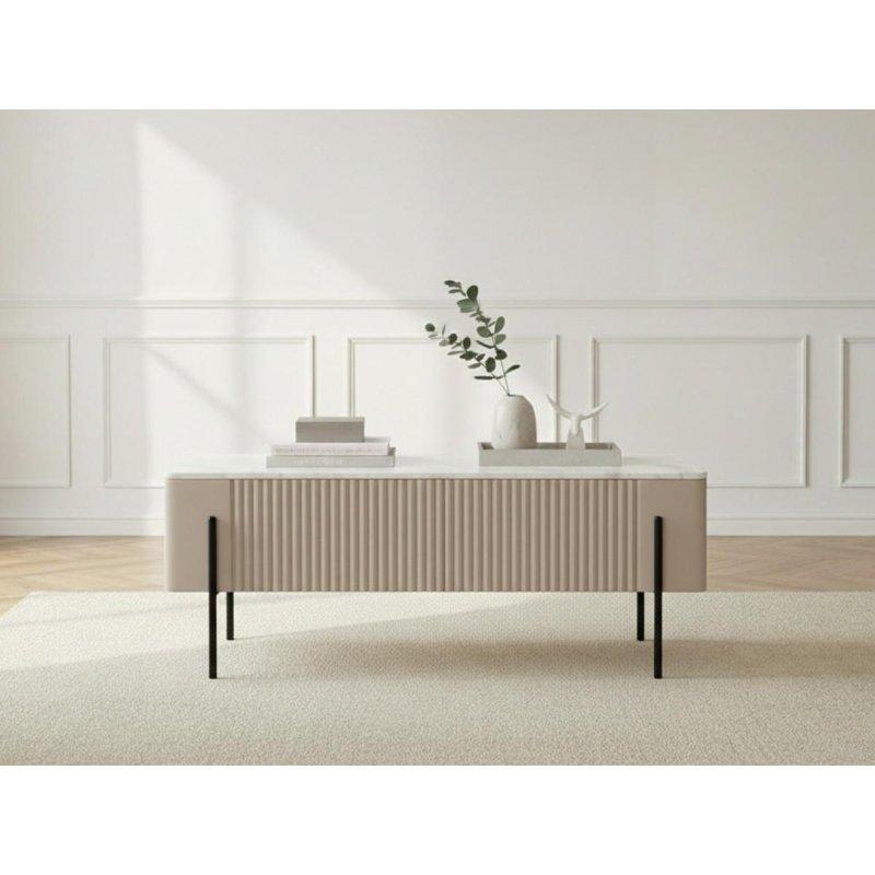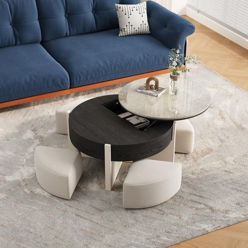 Sehpanın yuvarlak tasarımı, modern ve çağdaş bir stile uyum sağlar. Mermer üst yüzey, hem estetik hem de pratik açıdan avantajlıdır. Çünkü mermer, su ve leke geçirmez bir malzeme olup temizlenmesi kolaydır. Kahvelerinizi, çaylarınızı veya dekoratif nesneleri rahatça konabilirsiniz.
