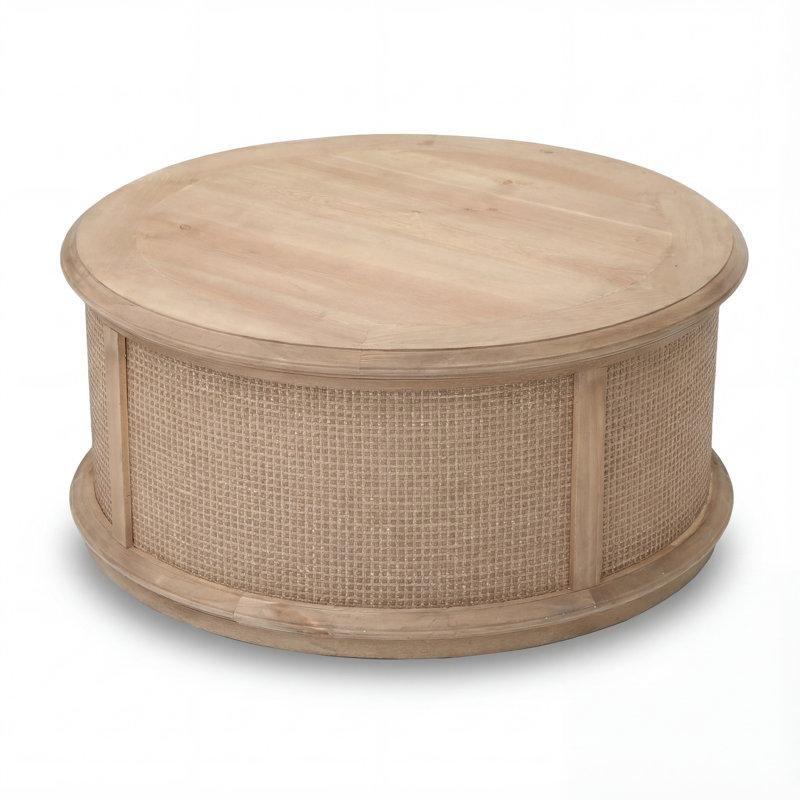 Masif ahşap ve MDF malzemeden yapılmış modern tasarımlı yuvarlak orta sehpa, işlevsel ve stilin bir arada sunulmasıyla dikkat çeker. Ürün, silindirik tasarımı ve yivli panel detaylarıyla mekanın görünümünü modernleştirir. Pürüzlü doku yüzeyine dokunduğunuzda hafif bir derin görünüm sunarak sadeliğin ortasında karakter katmaktadır.